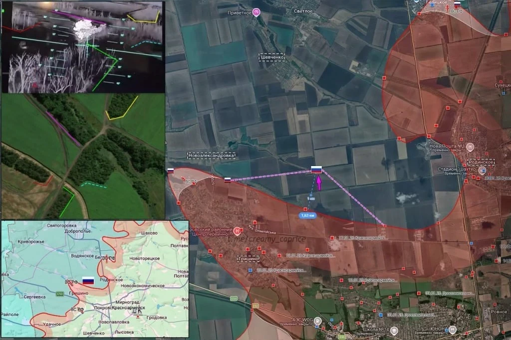 В Краснопольском районе продвижение российских войск составило до 1000 метров. В районе Новодмитровки завязались стрелковые бои, что указывает на активизацию боевых действий и попытки дальнейшего развития наступления. В районе Сопыч наши подразделения увеличили зону контроля, закрепляясь на занятых рубежах.
