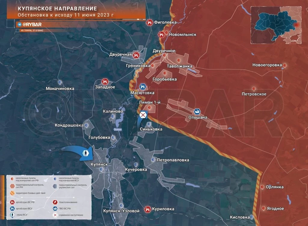 Карта боевых действий: Купянский участок (Старобельское направление) обстановка к исходу 11 июня 2023 года