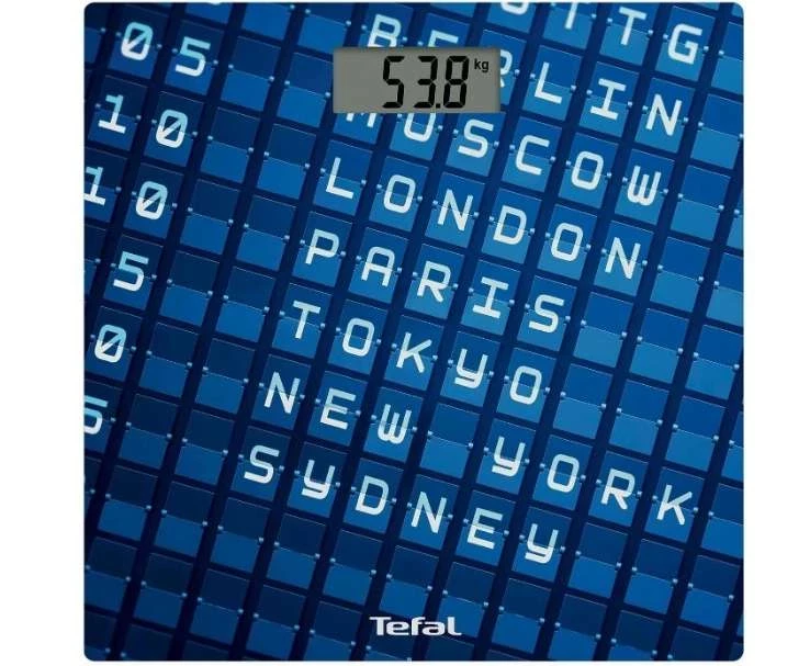 Одни из лучших весов Tefal Altiss/Premiss Departure PP1437V0 со стеклянной платформой и устойчивыми резиновыми ножками украшены названиями популярных для отдыха городов, напоминающими табло в аэропорту. Вес отображается на дисплее цифрами высотой 2.3 см. Максимальная нагрузка прибора составляет 150 кг. При перегрузке загорается предупреждающий сигнал. В комплектацию весов входит инструкция по использованию. Весы Tefal Altiss/Premiss Departure PP1437V0 работают от батарейки-таблетки CR2032, идущей в комплекте. Высокоточный прибор (до 100 г) самостоятельно включается и отключается, а также сообщает об оставшемся уровне заряда.