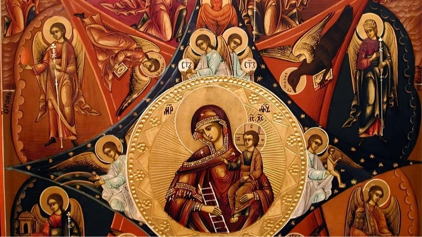 Огненная одежда Богородицы: Одежда Богородицы напоминает пламя и символизирует ее защиту от огня.