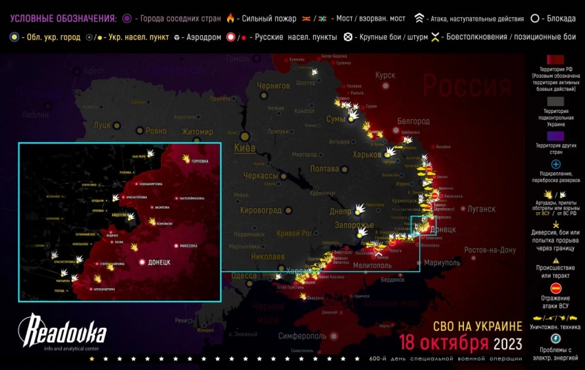 - Обновленная карта военной операции на Украине, военных действий и ситуация на фронтах вечером 18 октября от Телеграм-канала «Readovka»