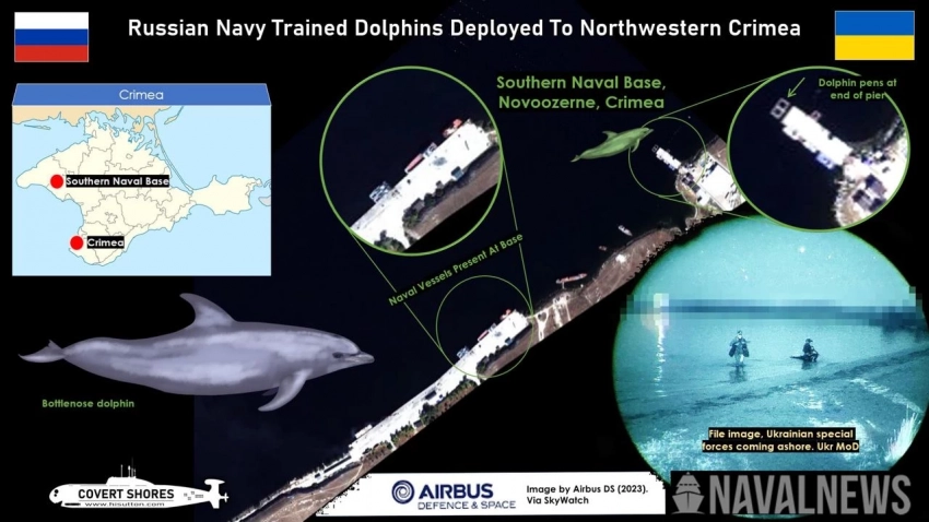 Согласно данным издания Naval News, на базе ВМФ РФ в поселке Новоозерное появились специальные загоны для боевых дельфинов. Этот шаг может быть связан с учащением рейдов украинского спецназа в этой местности.