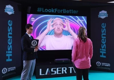 Глобальная корпорация по производству потребительской электроники и устройств Hisense открыла мероприятие Hisense Laser TV Championships в центре Bluewater Shopping Centre, графство Кент, чтобы попытаться попасть в Книгу рекордов Гиннессакак «Самая масштабная игра в гляделки». Почти 300 человек добровольно присоединились к соревнованию Hisense, чтобы привлечь общественное внимание к вреду синего света для глаз.