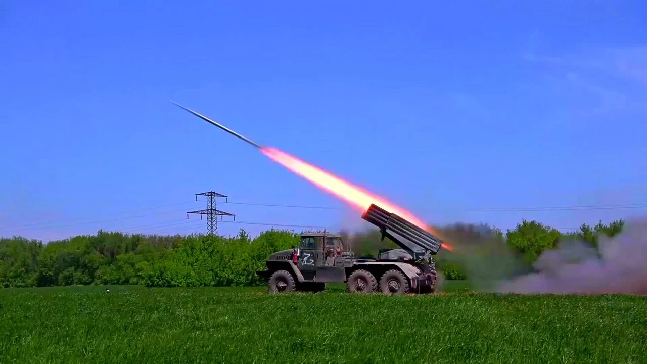 Министерство обороны Российской Федерации продемонстрировало кадры боевой работы расчётов РСЗО «Град» Народной милиции Донецкой Народной Республики по выявленной с помощью БПЛА позиции украинских вооруженных формирований в лесном массиве.