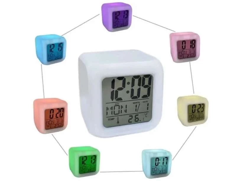 Часы-будильник Кубик-хамелеон с разноцветной подсветкой