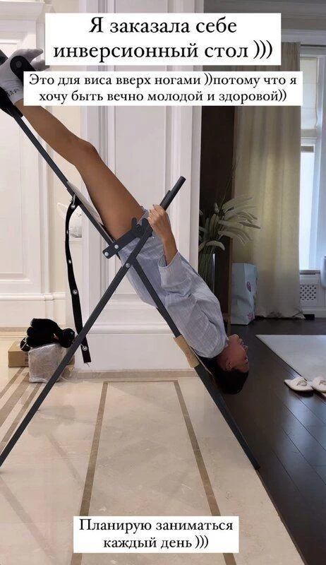 В своем стремлении к разнообразию и новым вызовам, Оксана Самойлова также попробовала инверсионный стол. Она продемонстрировала своим детям и поклонникам, как она подвешивается головой вниз и проводит время в таком положении. Она описала это как непростой, но интересный способ заботиться о своем теле. Блогерша объяснила, что ее желание быть молодой и здоровой побуждает ее практиковать это упражнение ежедневно.
