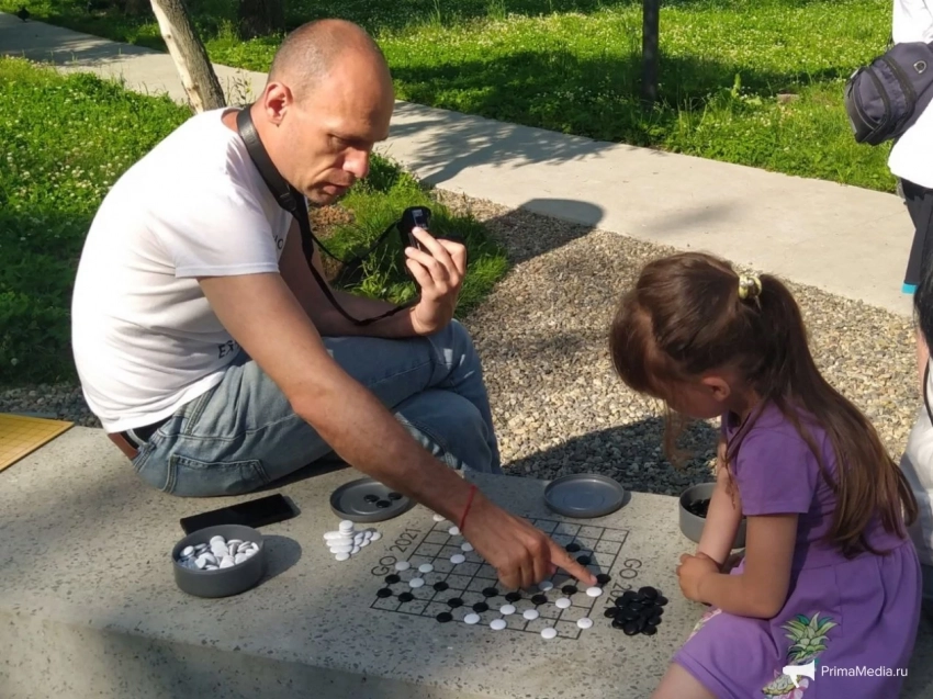 Мастер-класс по игре в го состоялся в пятницу, 30 июня, в сквере им. Надибаидзе во Владивостоке. Мероприятие приурочено ко Дню города, который пройдёт уже в это воскресенье. Каждый желающий мог научиться игре у профессионалов прямо на свежем воздухе, сообщает ИА PrimaMedia.