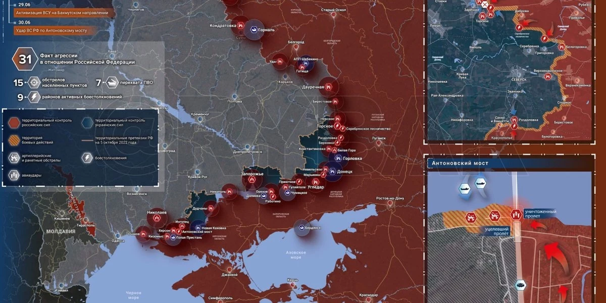 Карта боевых действий на Украине сегодня, Общая обстановка к утру 2 июля 2023 года от Mash