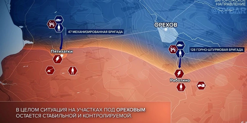 Запорожское направление. Под Ореховым продолжаются позиционные бои. Также ВСУ сумели продвинуться в направлении Приютного и закрепится в окрестностях Новодонецкого.