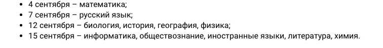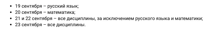 Резервный день: 19 сентября — русский язык, базовая математика.