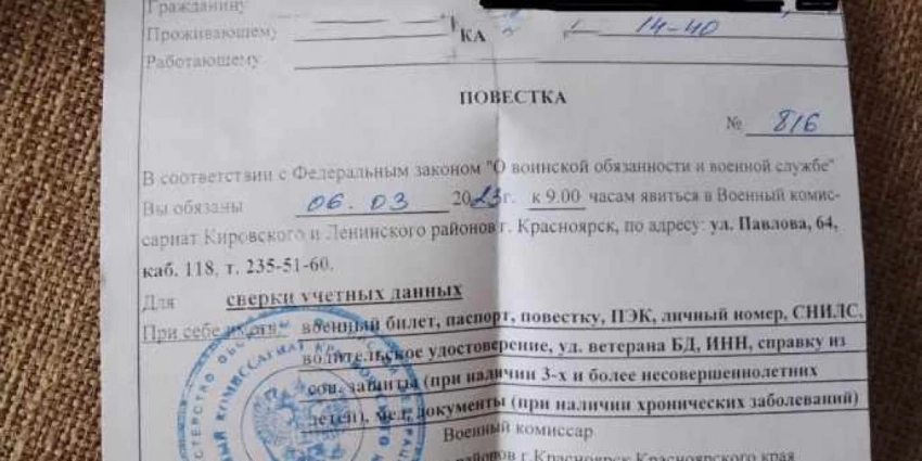 С 2022 года в военкоматы Ярославской области России начали присылать повестки для уточнения данных воинского учета. Военком Игорь Гостев заявил, что это рутинный процесс, а не массовая рассылка повесток. Он предназначен для граждан, призванных на военную службу или находящихся в запасе и длительное время не обновлявших свои личные данные.