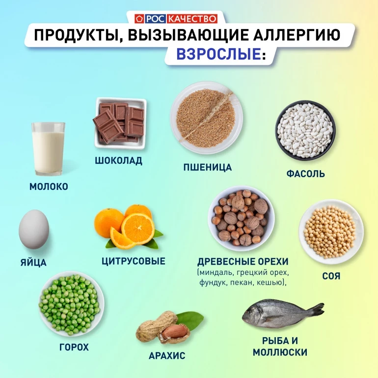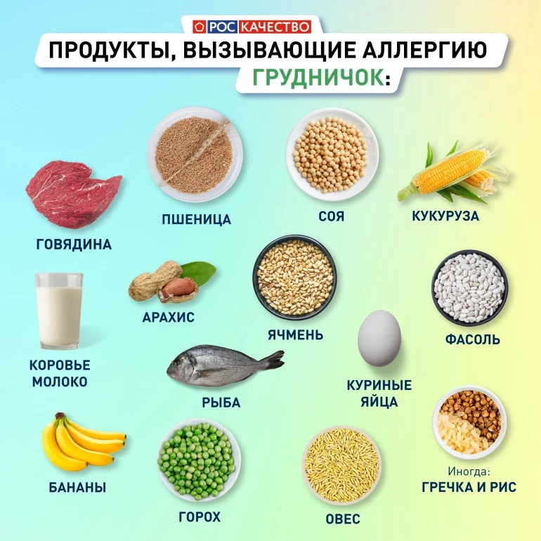 Негативная реакция возможна не только на традиционные аллергены, например клубнику, апельсины или шоколад, но и на вполне привычные всем продукты — гречку, рис и другие. К продуктам аллергенам относят более 170 позиций. В карточках перечислены самые распространённые из них.