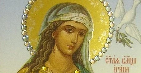 Мученица Ирина жила в I веке. Её отца звали Ликиния, он был правителем в одном из городков Македонии. В юном возрасте она узнала о христианском вероучении и отказалась от языческой религии. Вскоре она приняла Крещение. Девушка решила не выходить замуж и стать возлюбленной Иисуса.