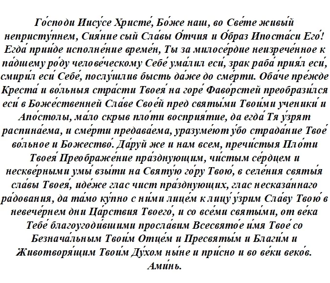 Также 19 августа молятся. На Преображение Господне звучат такие слова: