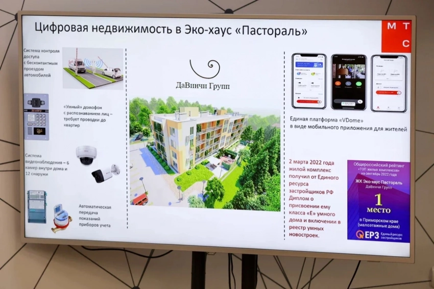 Особый интерес аудитории вызвала презентация кейса МТС по цифровизации жилой недвижимости на этапе строительства. Заказчиком проекта выступила компания “ДаВинчи Групп”, построившая в пригороде Владивостока жилой комплекс Эко-хаус “Пастораль”.