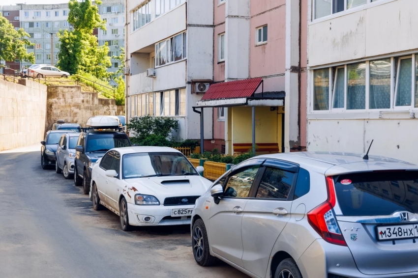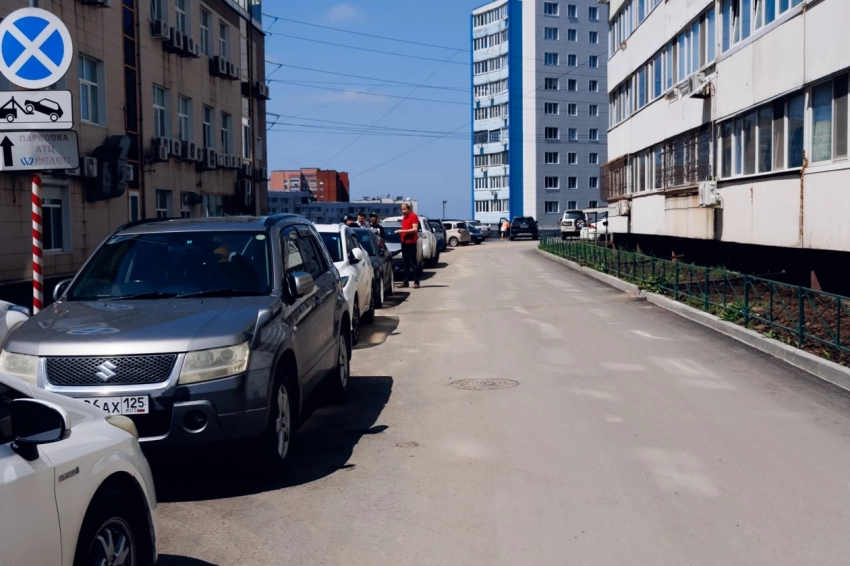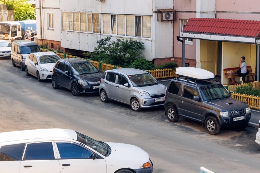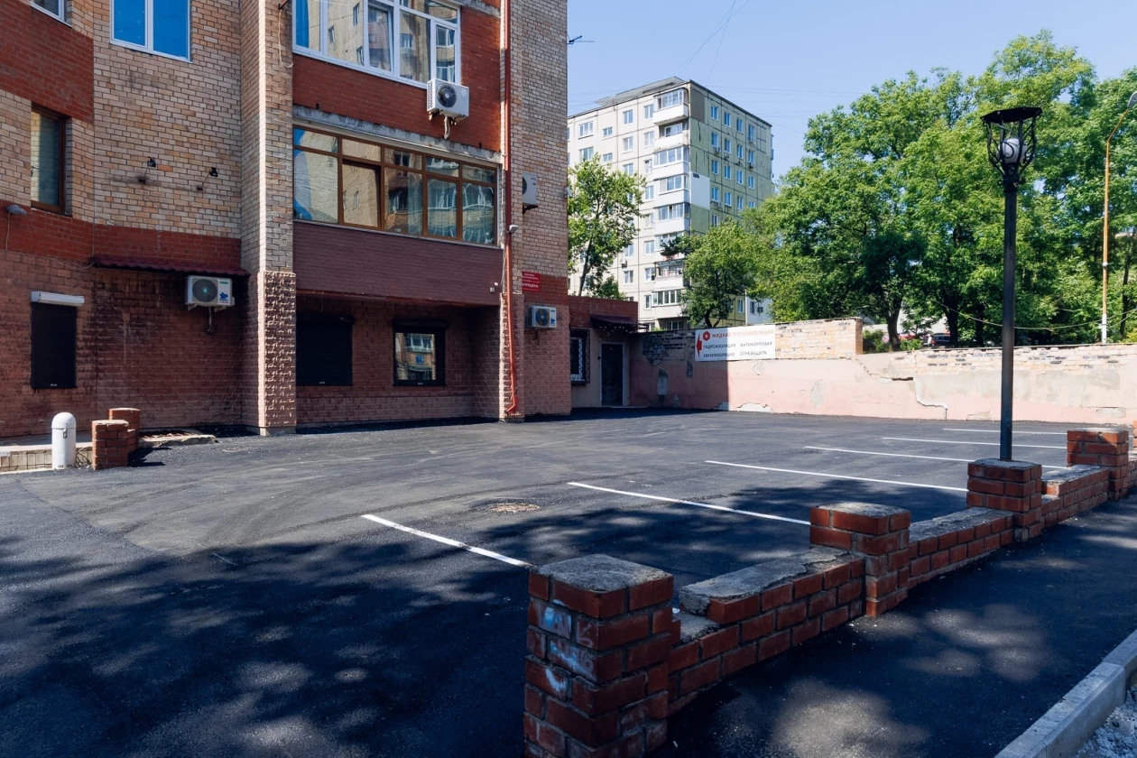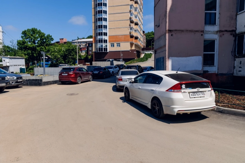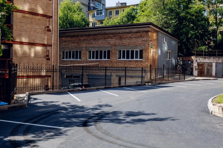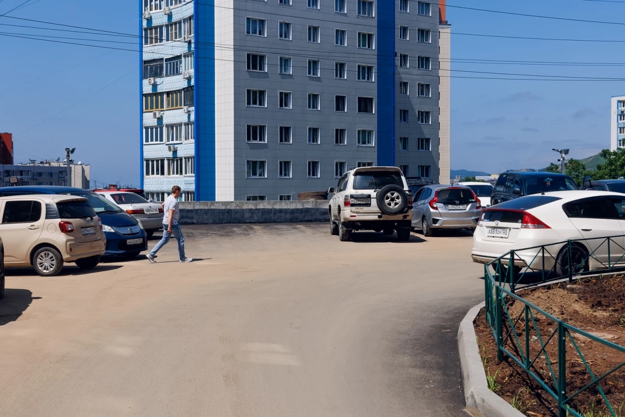 На Океанском проспекте, 70 В подрядная организация уложила асфальт и на проезде, и в парковочном кармане. Как и во многих дворах в центре города проблема с парковочными местами особенно беспокоила жителей. Теперь на новом асфальте уже красуется ровненькая разметка парковочных мест.