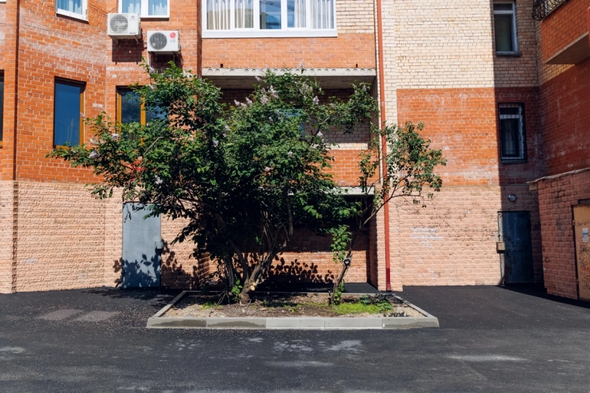 К слову, прошедшая на минувшей неделе стихия испытала новое асфальтовое покрытие. Проверку ливневым дождем новый двор выдержал — здесь предусмотрительно была сделана разуклонка и ливневая канализация. Кроме того для повышения безопасности дорожного движения с помощью асфальта был оформлен лежачий полицейский. В этом дворе обновили бордюры, тротуары, а также поставили ограждающие газоны заборы. Еще одно новшество — современные светильники, установленные на фасаде дома.