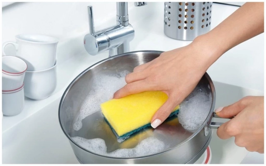 Оказывается, процесс мойки может быть не таким сложным, особенно если знать проверенные и эффективные лайфхаки. Чтобы максимально быстро отмыть посуду от теста необходимо залить ее теплой водой и оставить на некоторое время. Когда остатки теста размокнут и не будут прилипать к поверхности кастрюли, от них можно быстро избавиться при помощи губки.