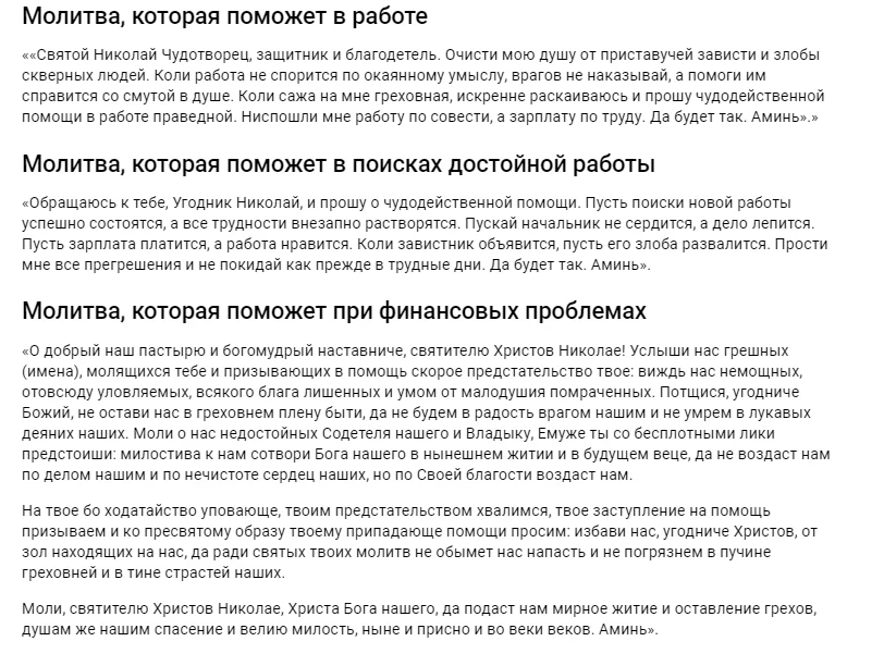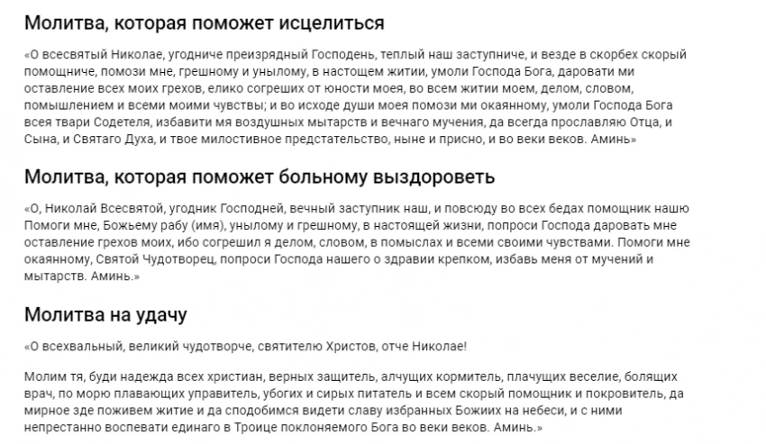 Считается, что Николаю Угоднику молятся в самых разных жизненных ситуациях, но изначально его чтили как покровителя моряков, путешественников и купцов. Именно потому без молитвы святому верующие не отправляются в дорогу и не начинают большое дело. Чудотворец всегда стоит на защите детей, подростков, невинно поругаемых, сирот и вдов.