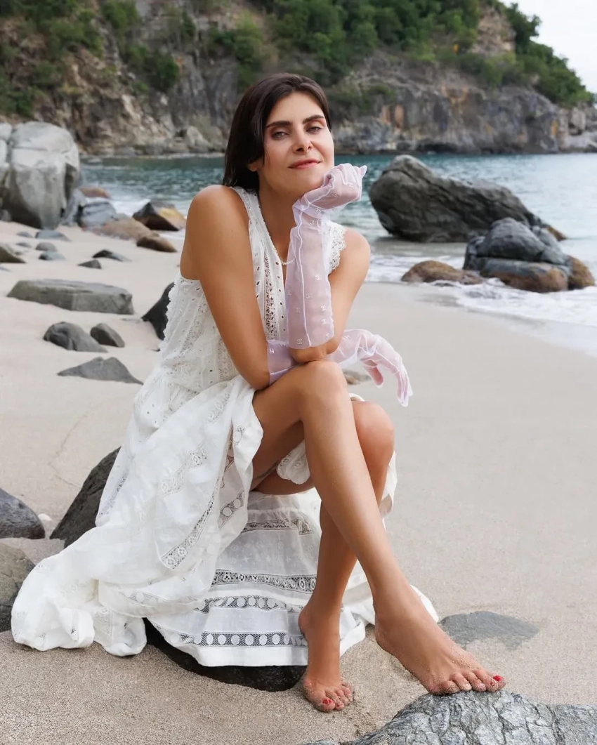 На фото Надежда позирует в белом платье и перчатках Chanel на пикнике на пляже, занимается йогой, читает книгу и загорает в бикини. "Остров радости", — подписала кадры невеста бизнес-партнёра Романа Абрамовича.