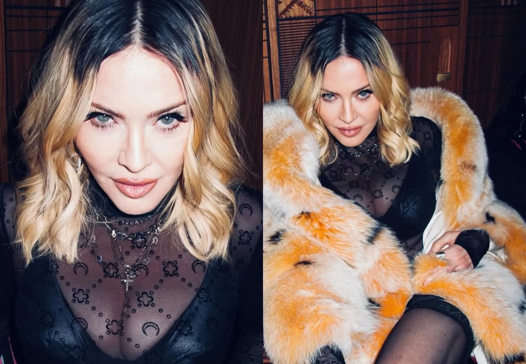На снимках 66-летняя певица позирует в прозрачном лонгсливе, чулках и шубе в компании Мерта Аласа, модели Авенг Аде-Чуол, 22-летнего рэпера NLE Choppа и своего 28-летнего бойфренда Акима Морриса.