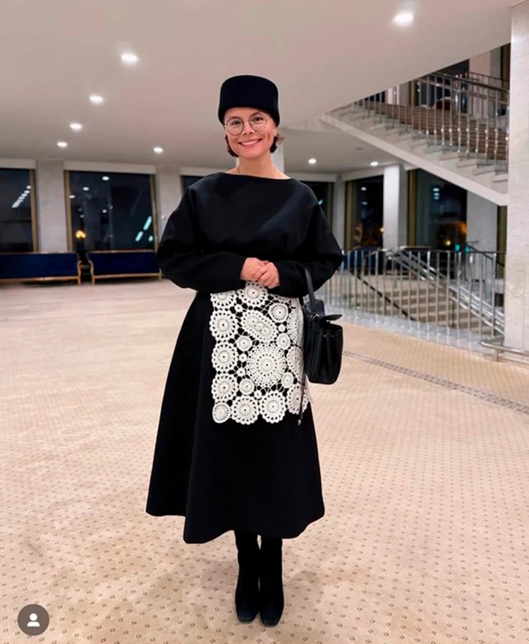 Если образ Бони больше подходит для свиданий с продолжением в тот же вечер, то лук Татьяны для тех, кто целуется только на десятой встрече. Молодая жена Петросяна показала, как обыграть даже самое целомудренное платье. Нужно просто добавить эффектный акцент, которым в этом случае стал пояс, похожий на кружевную ретро-салфетку. На такую раньше ставили телевизор. Ну и без оригинального головного убора не обошлось.