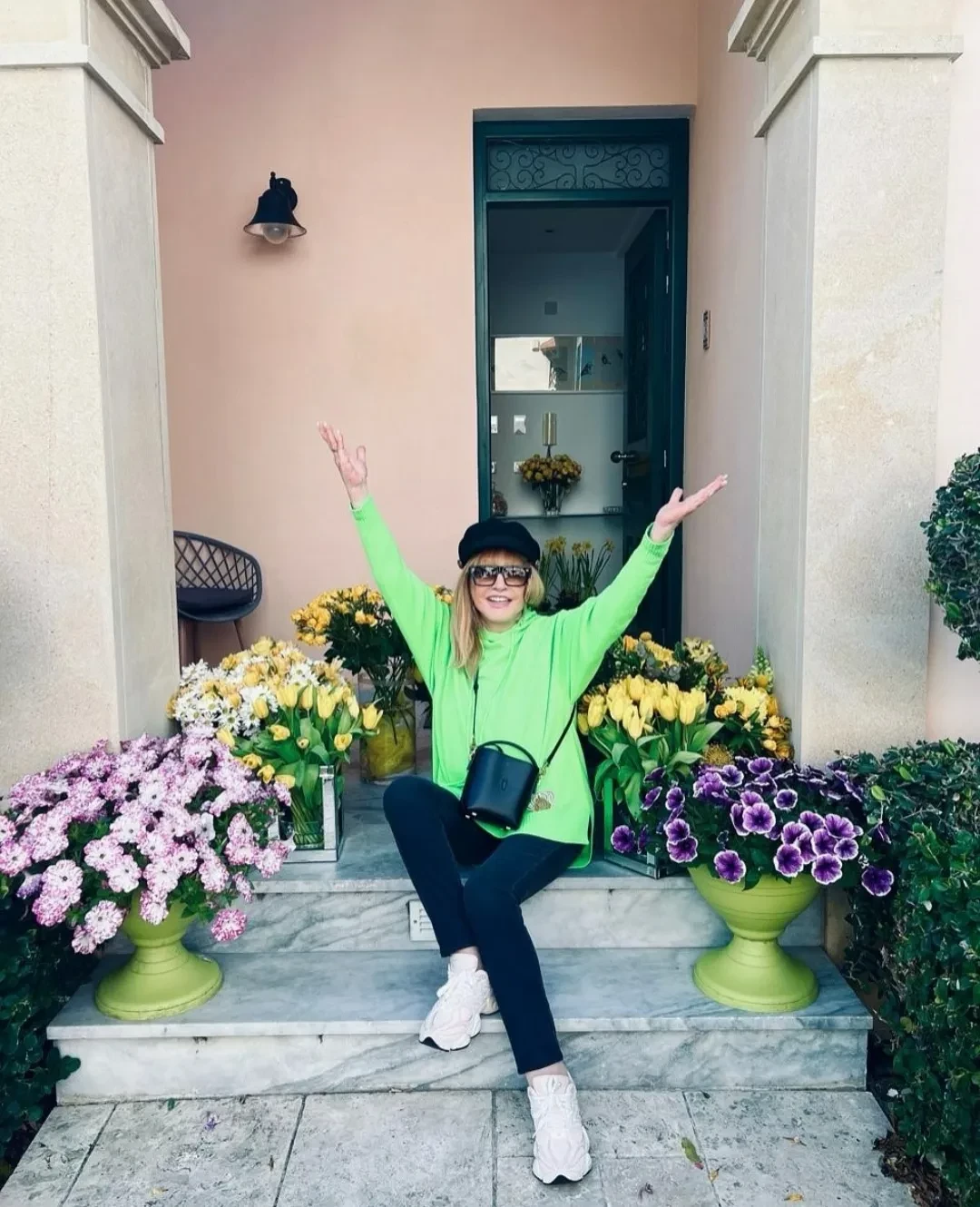 "Поздравляю мою любимую с её Праздником желтых цветов, с Первым воскресеньем весны! (орфография и пунктуация автора сохранены. — Прим. ред.)" — написал он в соцсетях и опубликовал фотографии Пугачёвой в окружении цветов.