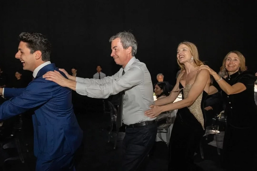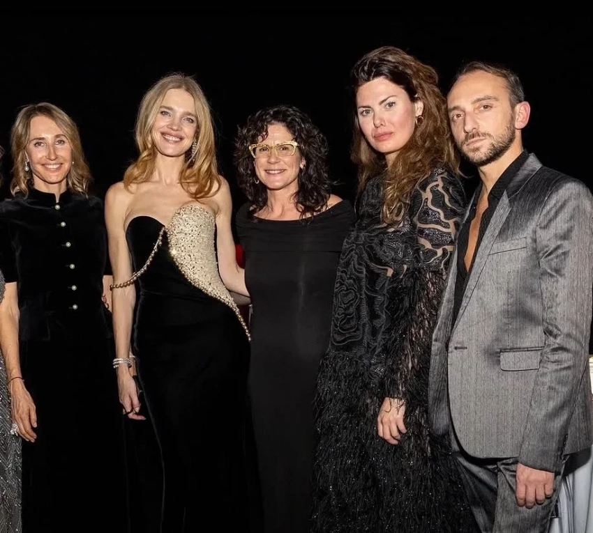 43-летняя Наталья Водянова позировала на вечере в чёрно-золотом платье, а 60-летняя Ольга Слуцкер надела зелёный бархатный костюм.