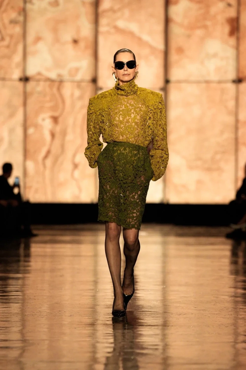 По подиуму прошлись Белла Хадид и обладательница титула "Модель года — 2024" Анок Яй, которые пропустили весь сезон и вышли только на шоу Saint Laurent. Анок перед показом сменила имидж и побрилась налысо.