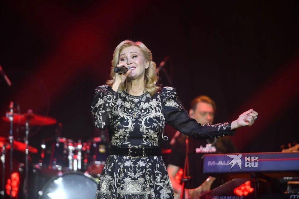 На концерте Вика Цыганова исполнила хиты «Любовь и смерть», «Русское поле», «Колокола», «Снегири»