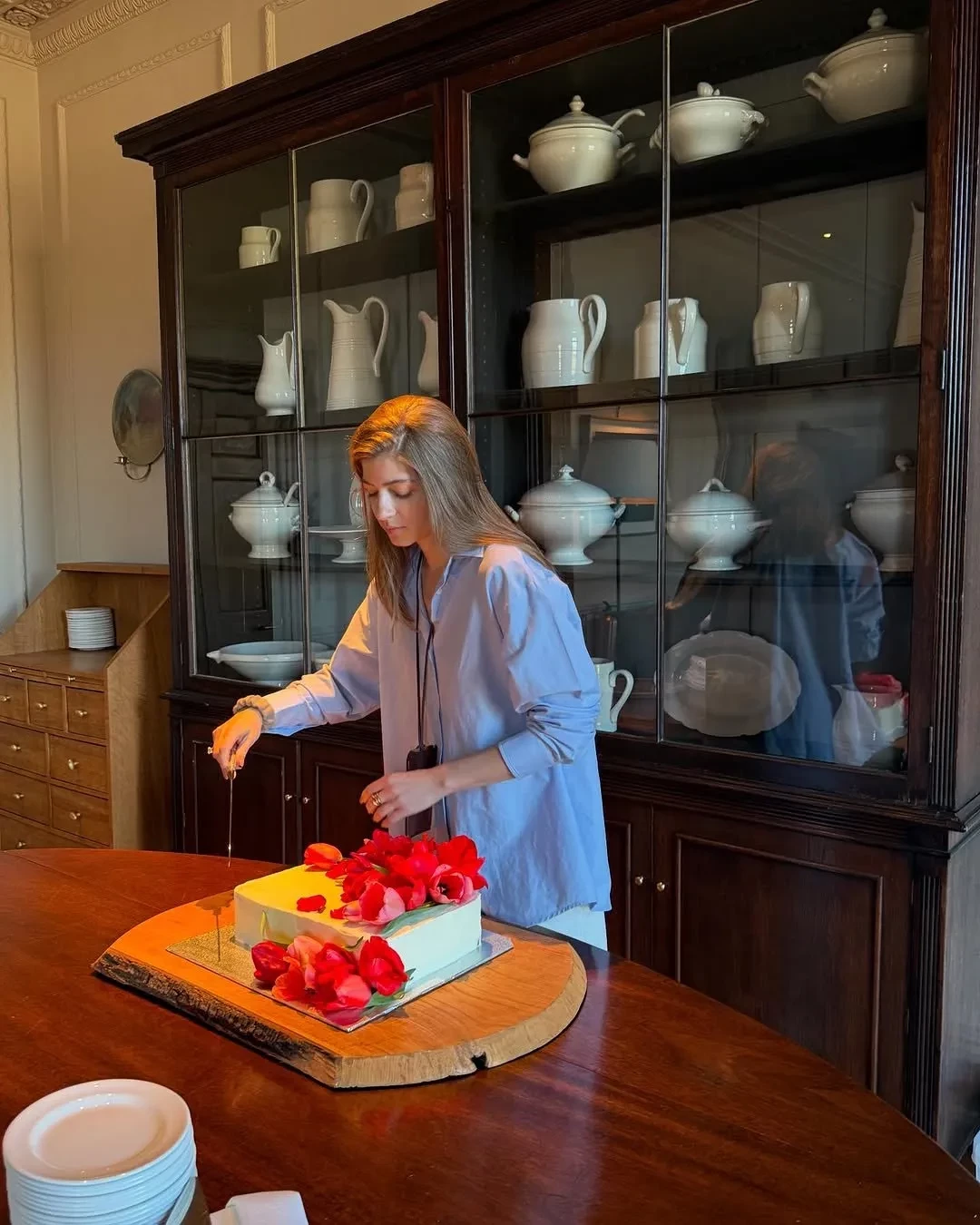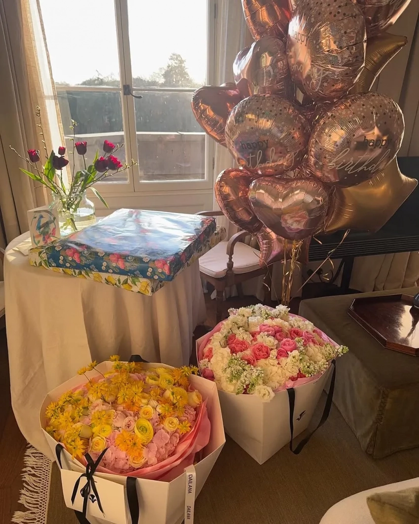 На фото Саша задувает свечи на праздничном торте вместе с мужем и трёхлетней дочерью, позирует в birthday-образе: бежевой юбке, рубашке в тон и с сумкой Chanel и отмечает дату на пикнике с друзьями. Блогерша также показала подарки от близких и букеты цветов с воздушными шарами.