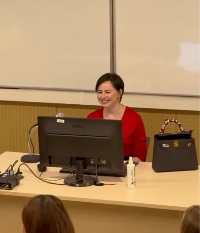 "Хотите просто упасть? С сегодняшнего дня я — старший преподаватель магистерской программы "Психоанализ и психоаналитическое бизнес-консультирование" в НИУ ВШЭ. После вчерашней лекции я получила такое предложение и немедленно на него согласилась", — написала Лаврентьева в своём телеграм-канале и отметила, что конкурс за место на программу, включающую её курс лекций, высокий. Накануне 46-летняя супруга писателя Александра Цыпкина выступила перед студентами ВШЭ, надев красное платье и дополнив образ сумкой Hermes Kelly (примерная стоимость от миллиона рублей).