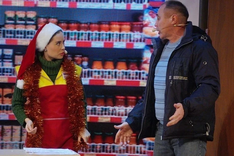 Юлия МИхалкова получала разноплановые роли, в том числе и кассирш. Фото: фрагмент шоу "Уральские пельмени"