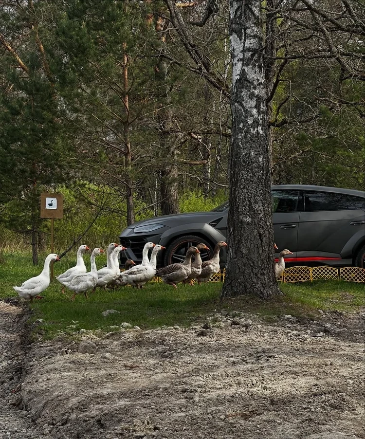 Дорогой авто припарковали среди гусей. фото: личная страница героя публикации.