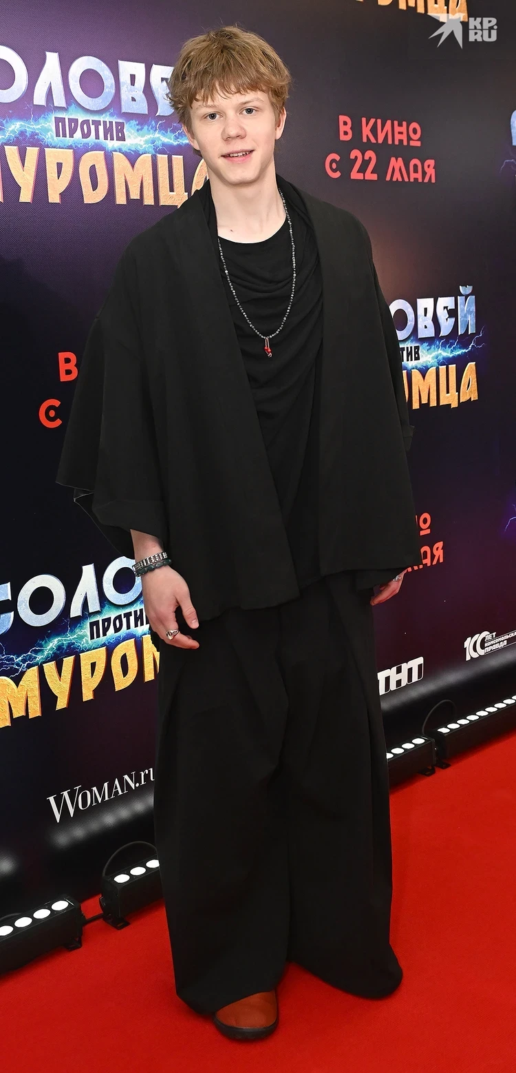 Одну из главных ролей исполнил 18-летний Тимофей Кочнев. Парень появился на ковровой дорожке в стильном костюме, который дополнил кулоном и браслетами из камней.
