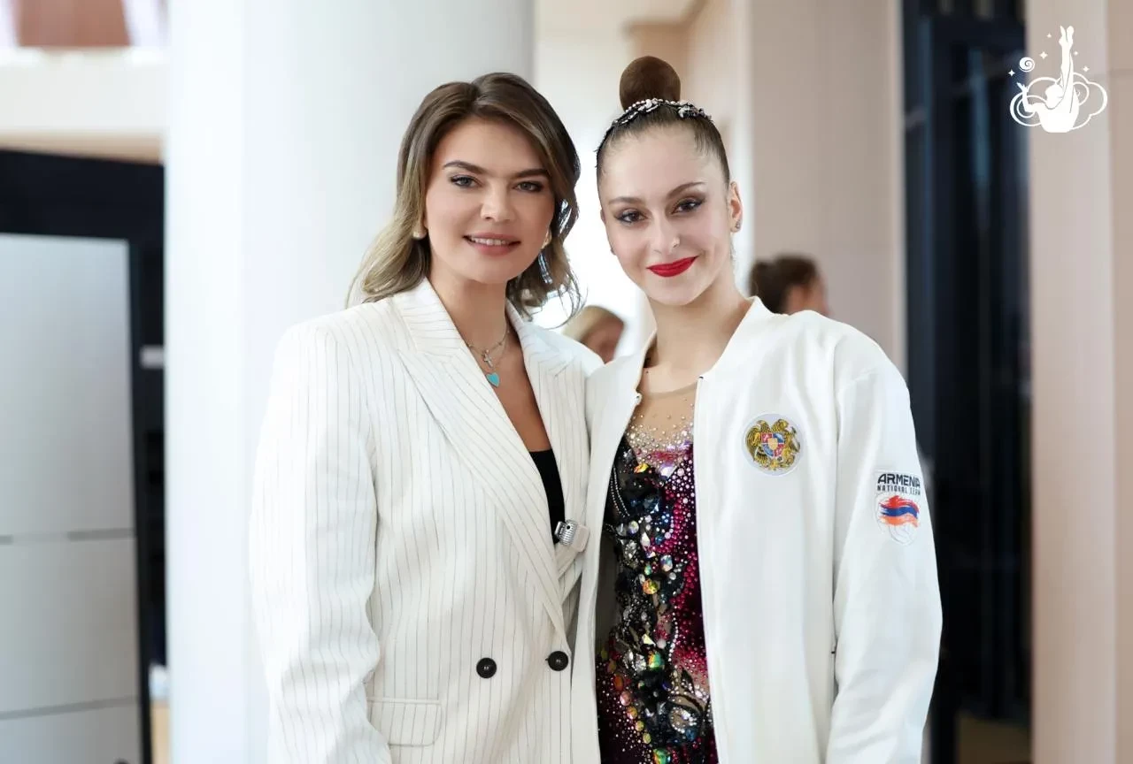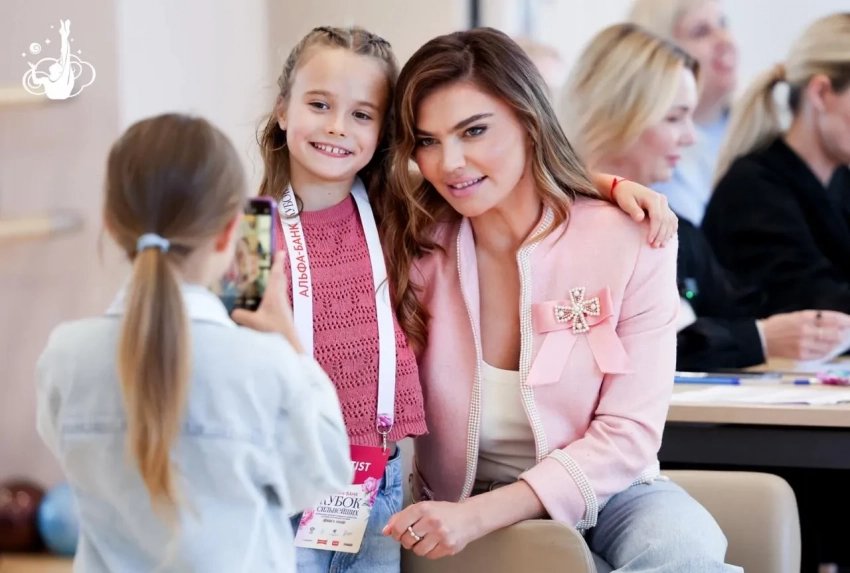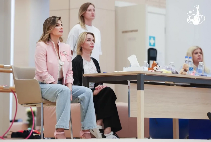На одной из церемоний 42-летняя Кабаева появилась в розовом укороченном жакете с декором, свой образ она дополнила светлыми джинсами свободного кроя и атласными туфлями на шпильке. Для финального дня соревнований Алина выбрала светлый брючной костюм с чёрным топом.