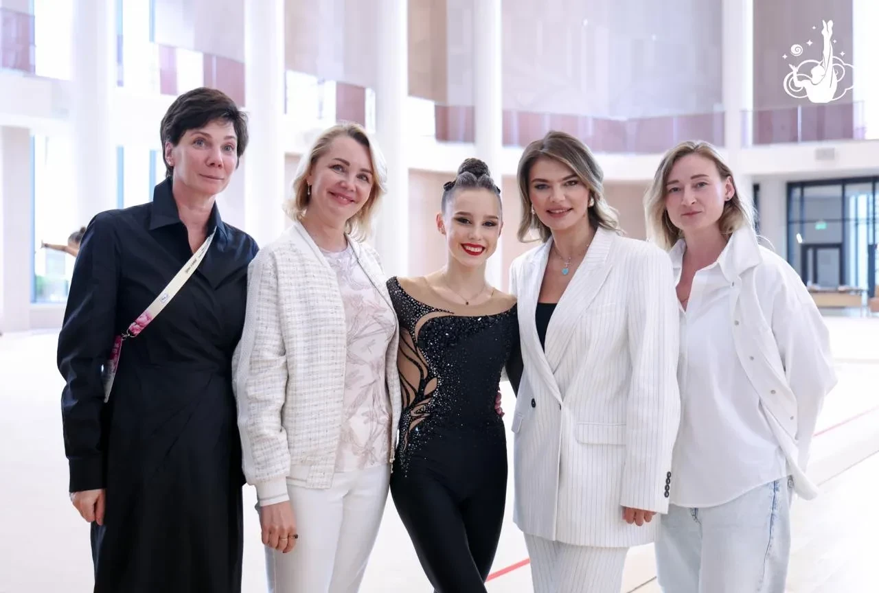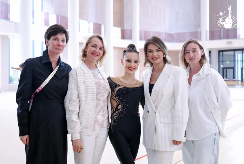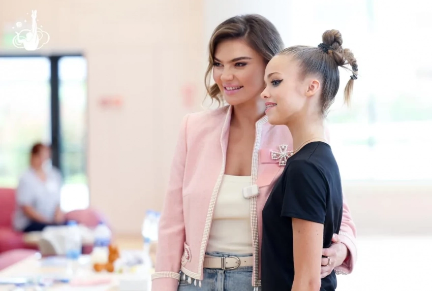 Алина Кабаева в эти дни находится на втором этапе "Кубка сильнейших" по художественной гимнастике в собственной академии "Небесная грация" в окрестностях Сочи. Олимпийская чемпионка посетила награждение юных спортсменок, продемонстрировав два летних образа.