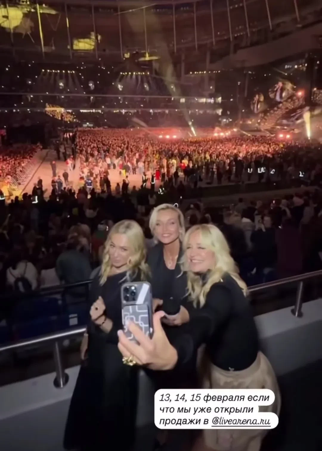 Собравшиеся в  VIP-ложе Филипп Киркоров, Полина Гагарина, Алсу, Ида Галич, Виктория и Олег Шеляговы, Мари Краймбрери с мужем Давой, Алексей Жидковский и другие знаменитости активно танцевали и подпевали певцу вместе с прочими зрителями.