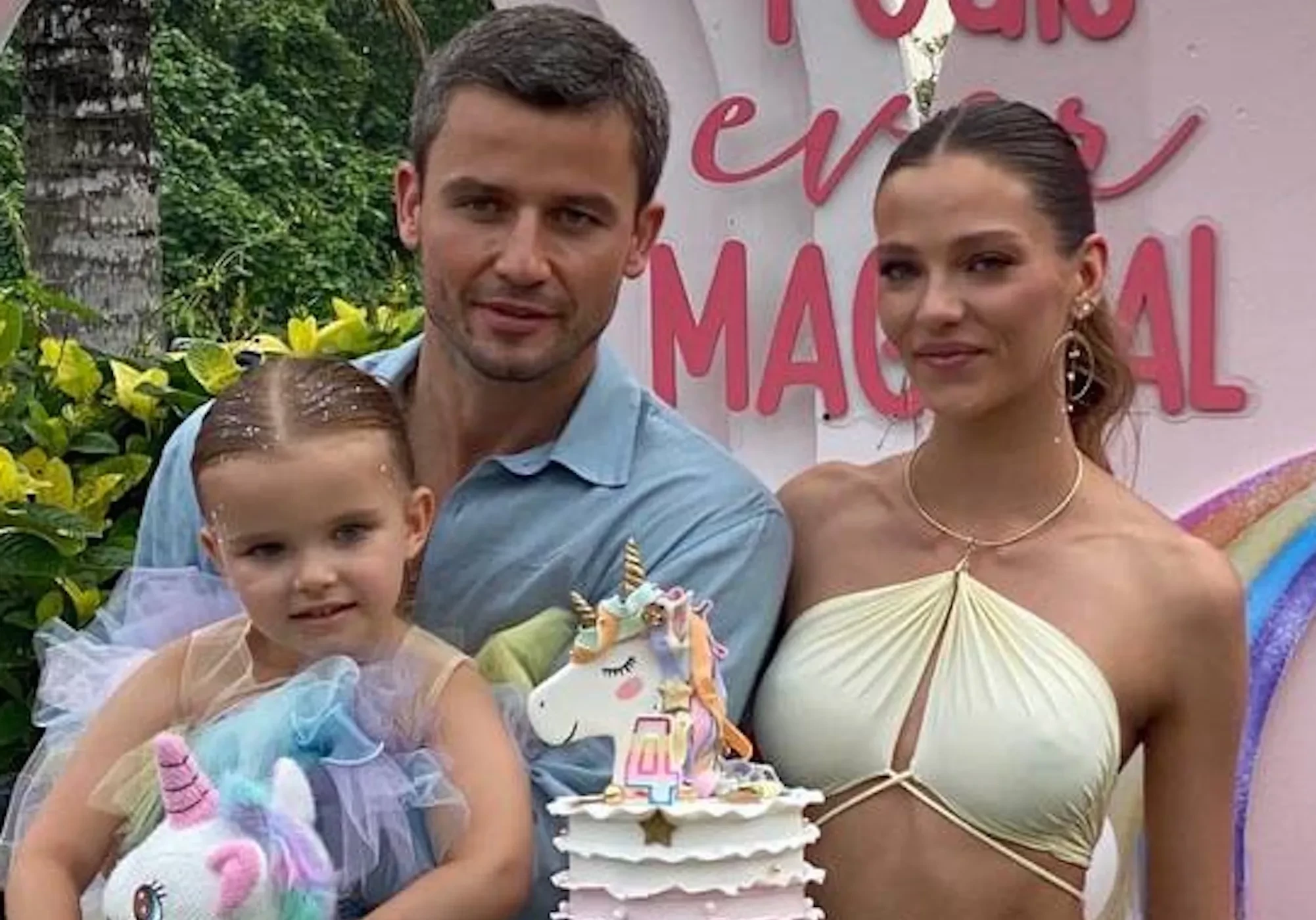 Алеся Кафельникова и Георгий Петришин с дочерьюАлеся Кафельникова и Георгий Петришин с дочерьюАлеся Кафельникова и Георгий Петришин с дочерьюДень рождения Киары прошёл на берегу океана, предположительно на Бали, где Кафельникова часто живёт с семьёй. Территорию у бассейна украсили надувной замок и воздушные шары. Детей и взрослых развлекали аниматоры-русалки, угощали разноцветным тортом, а вечером был фейерверк на пляже.