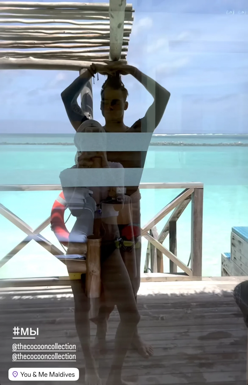 Влюблённые поселились в пятизвёздочном отеле You & Me Maldives, расположенном на частном острове и предназначенном только для взрослых. На фотографиях фигуристка позирует в коричневом слитном купальнике, а также делает селфи с бойфрендом.