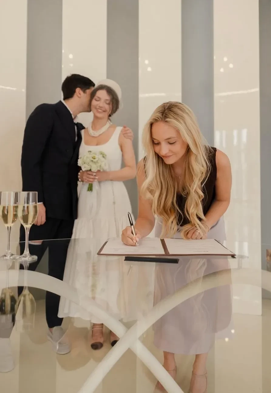 Дочь гендиректора ГУМа и управляющей компании Bosco Теймураза Гугуберидзе София, которая недавно сыграла роскошную свадьбу в Грузии, поделилась снимками с регистрации брака.