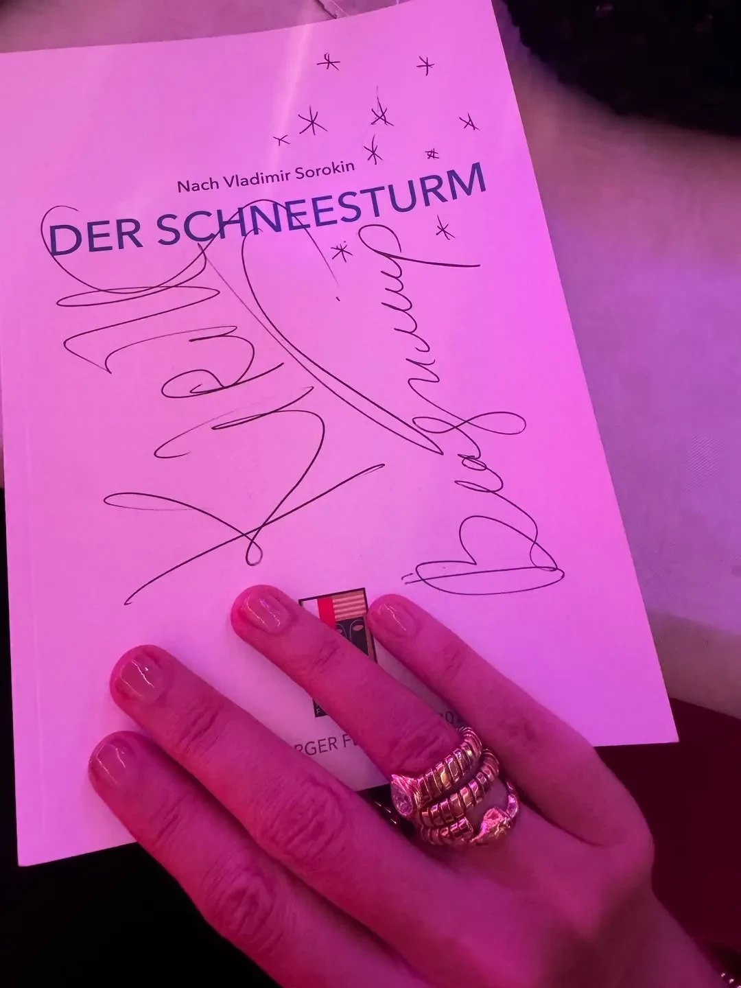 "Поздравляю всю команду Кирилла: блестящая работа Филиппа Авдеева в роли Перкуши, похудевшая и искрящаяся Варвара Шмыкова, любимая Ян Гэ, погружающая своим пением в транс. Какое счастье было вас всех обнять и увидеться!" — написала Собчак.