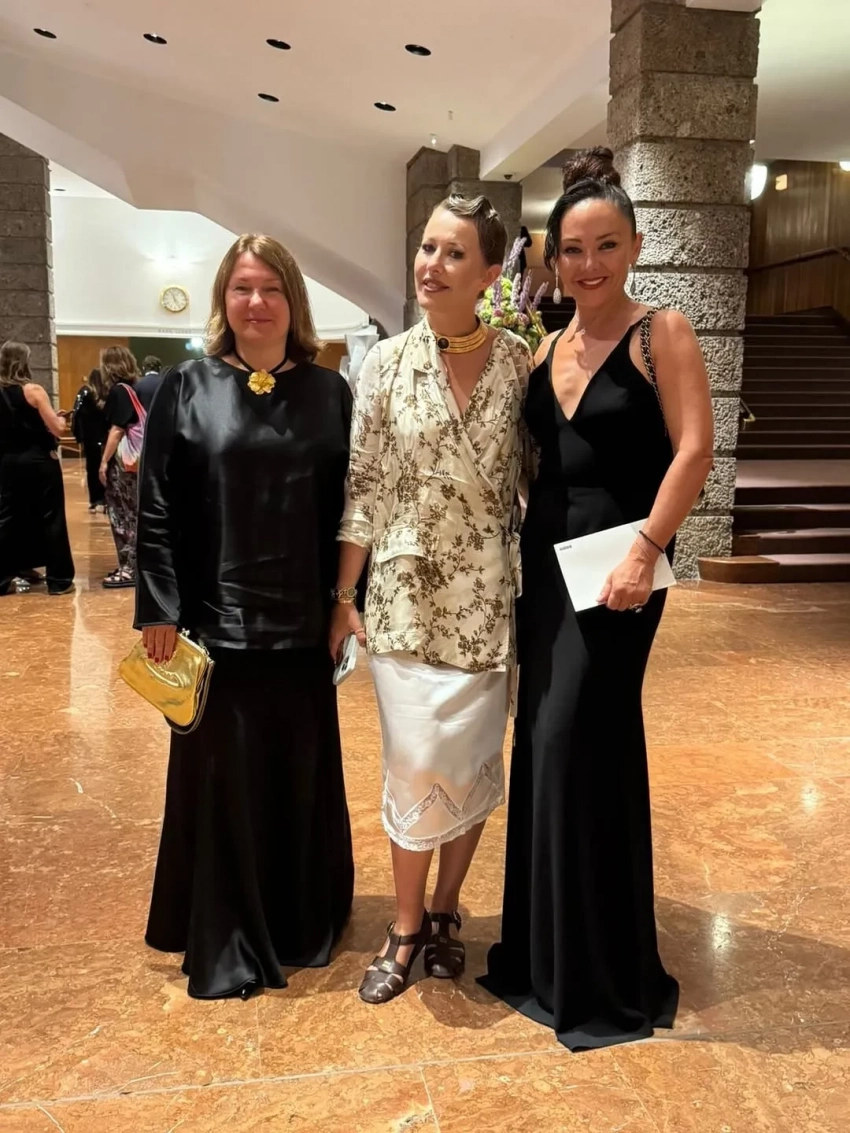 Ксения Собчак с гостьями фестиваляНа следующий день Ксения посетила оперу режиссёра Дмитрия Чернякова "Юлий Цезарь в Египте", которую, кстати, Вика Газинская и назвала "черняковским бездарством". В отличие от дизайнера, Собчак постановка пришлась по вкусу. Она назвала её "блистательным факом моде на Генделя и барочную музыку".