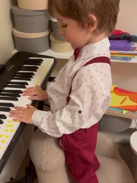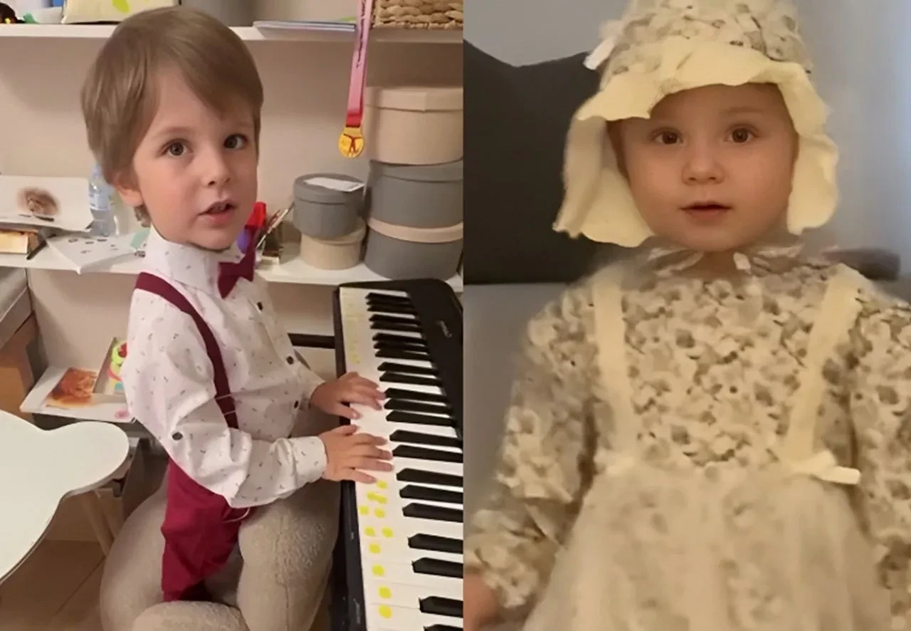На одном из видео четырёхлетний Лев, одетый в рубашку с бабочкой, поёт, аккомпанируя себе на пианино, на другом — годовалая Лея в чепчике и платье с рюшами уже уверенно ходит по их квартире.