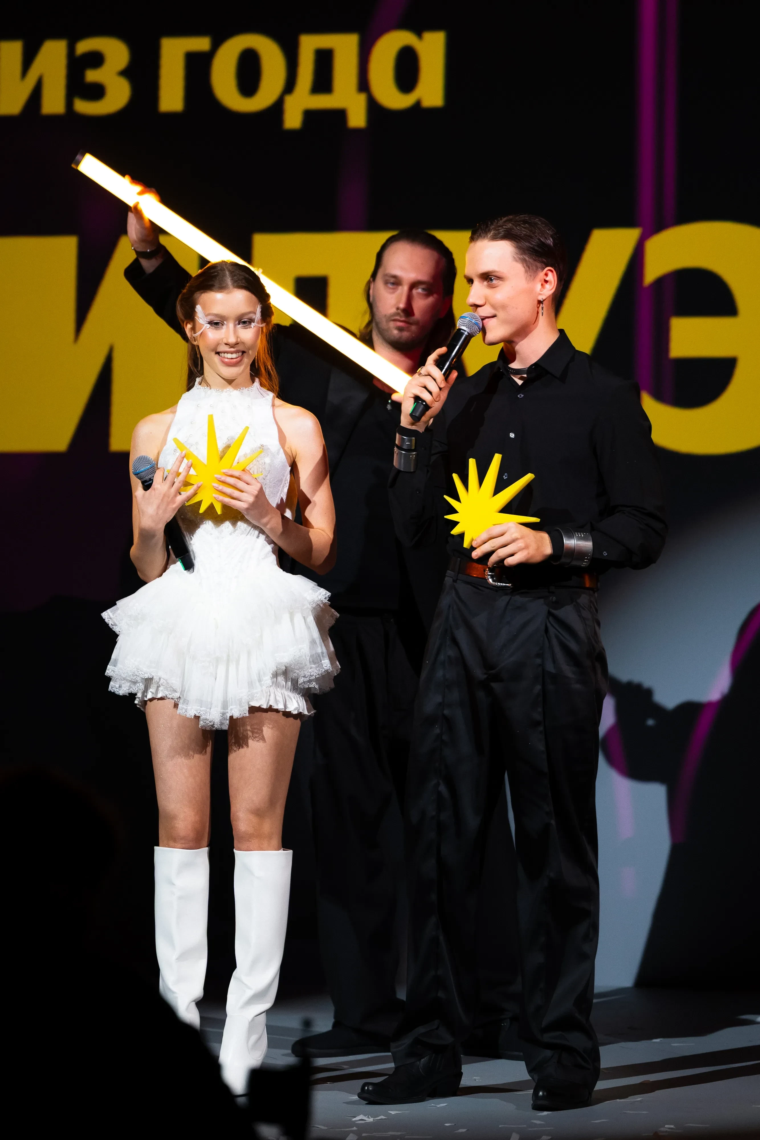 Ведущими церемонии стали молодая мама Регина Тодоренко и молодожёны Александр Горчилин и Мария Миногарова.