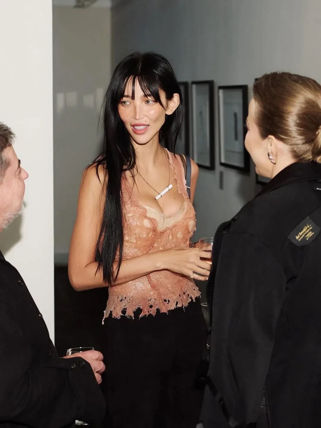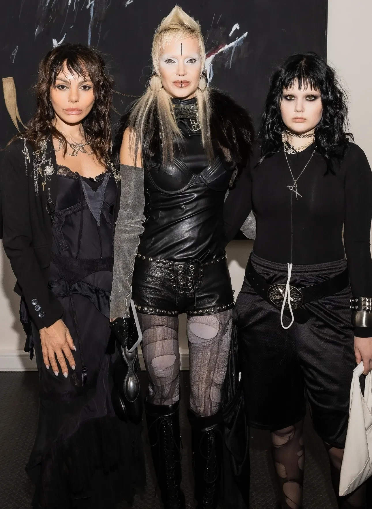 39-летняя Глюкоза вышла в свет вместе с младшей дочерью Верой, которая кардинально сменила имидж. Сама певица позировала в своём уже привычном образе: в кожаных шортах, рваных колготках и с необычным макияжем. 43-летняя Ксения Собчак пришла на мероприятие в куртке Undercover, рубашке с галстуком от Saint Laurent и ботфортах Enfants Riches Déprimés.