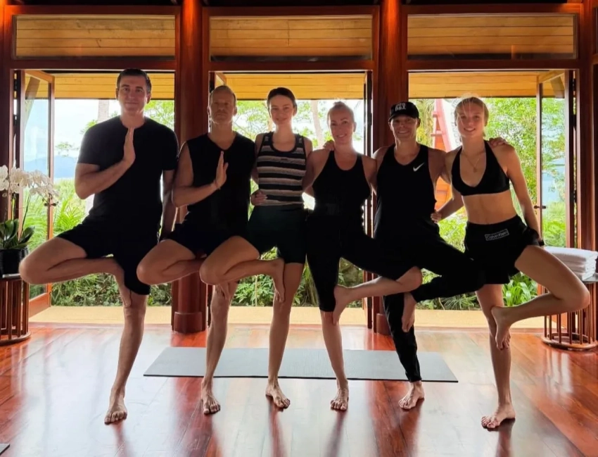 Модель сделала репост в сторис* снимка, на котором они с миллиардером занимаются йогой в отеле Доронина Aman на Пхукете. На фото пара позирует в спортивной одежде вместе с танцовщицей Полиной Кулаковой и другими гостями. "Поиск баланса", — написал автор снимка.