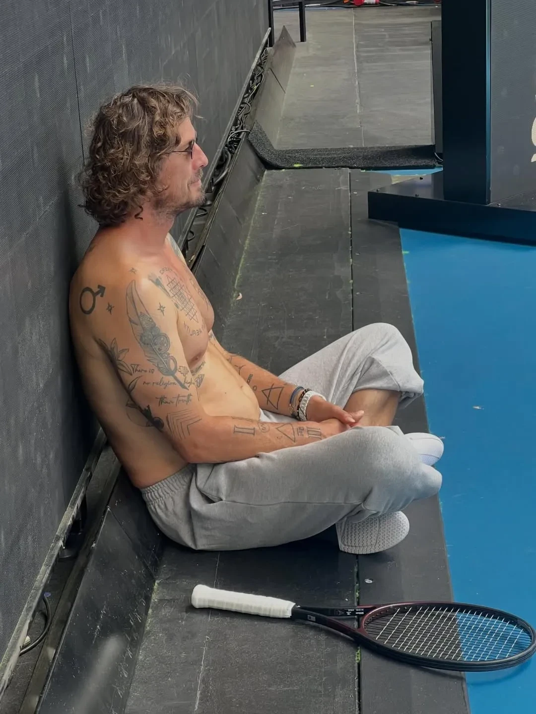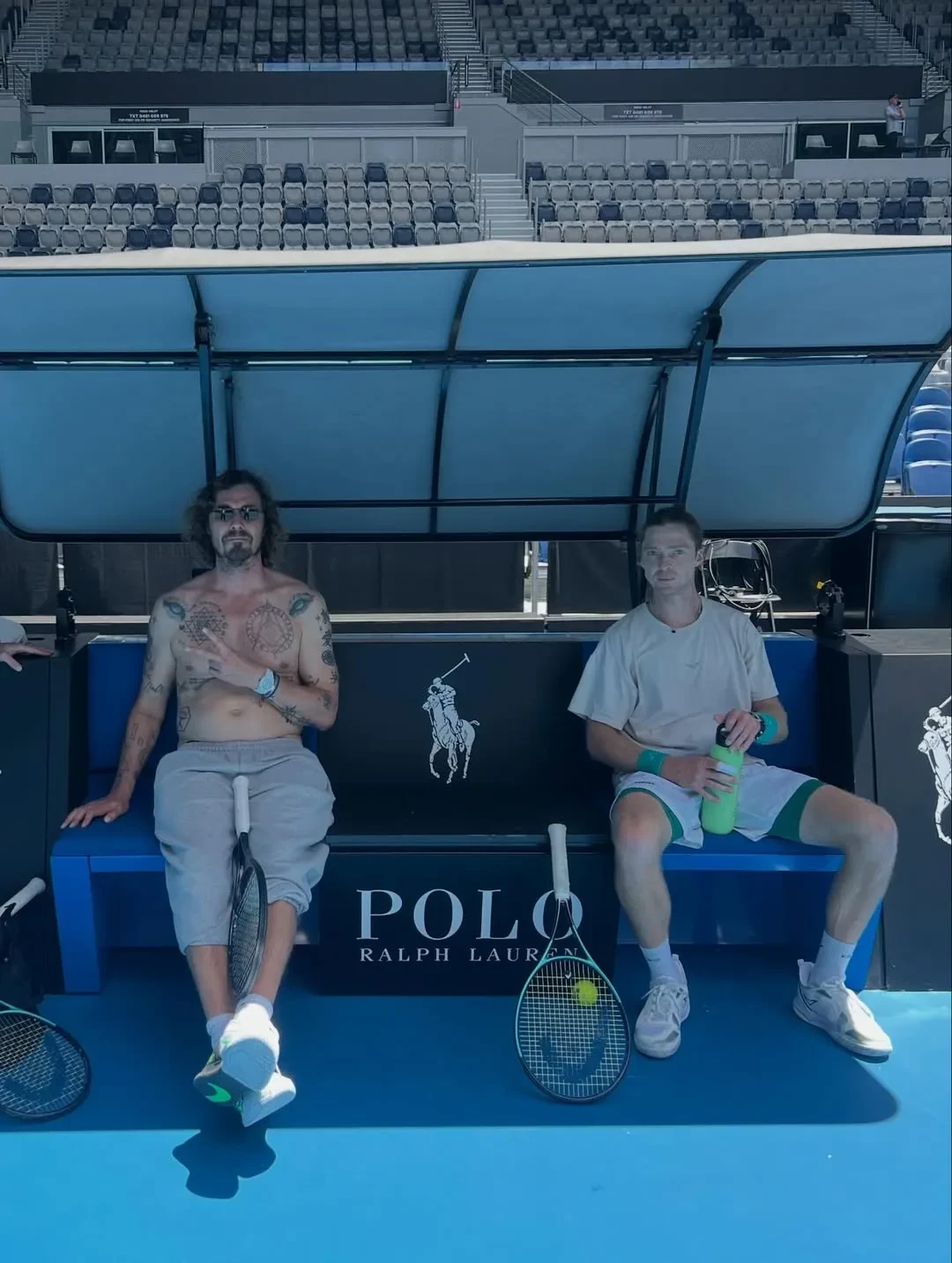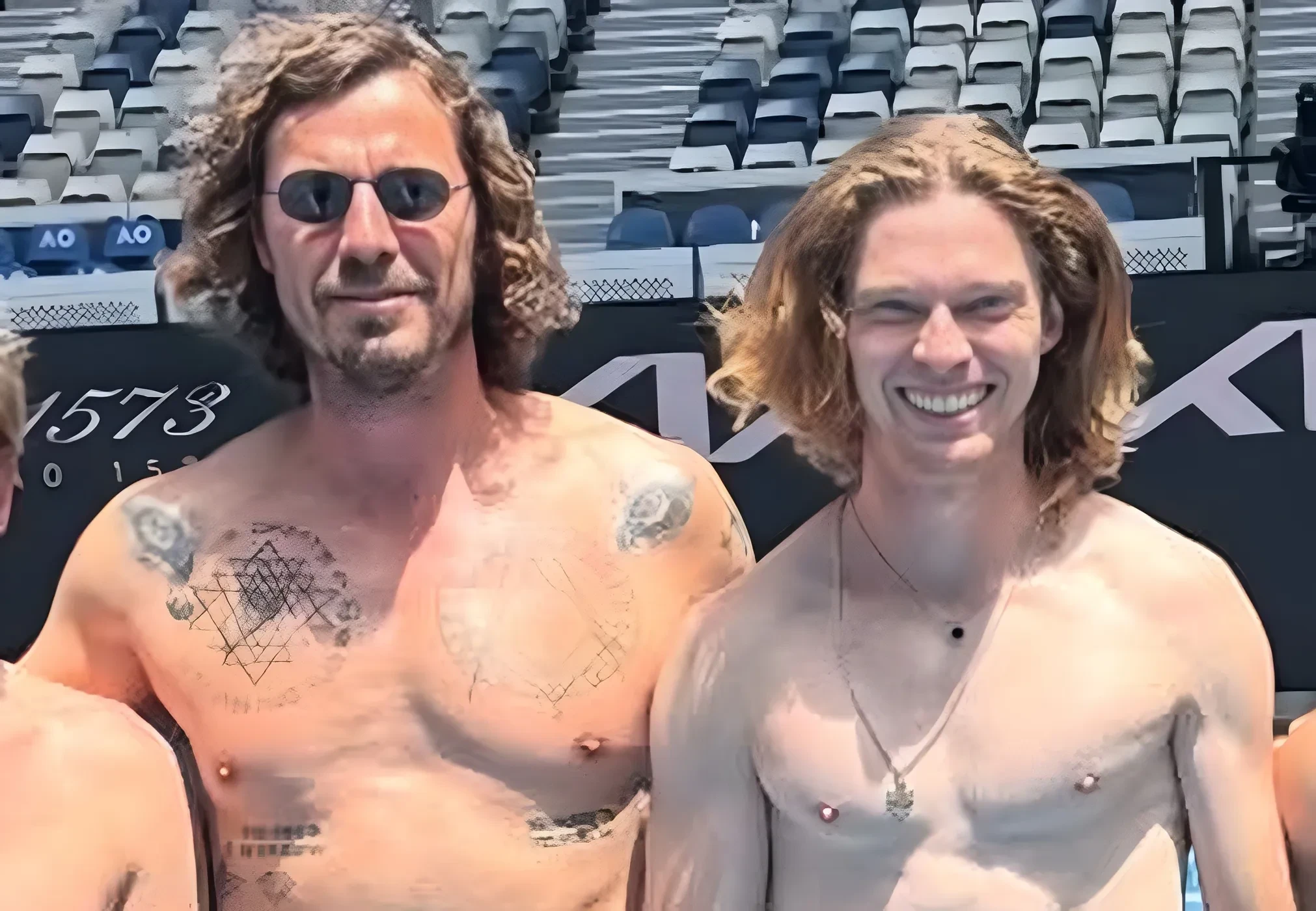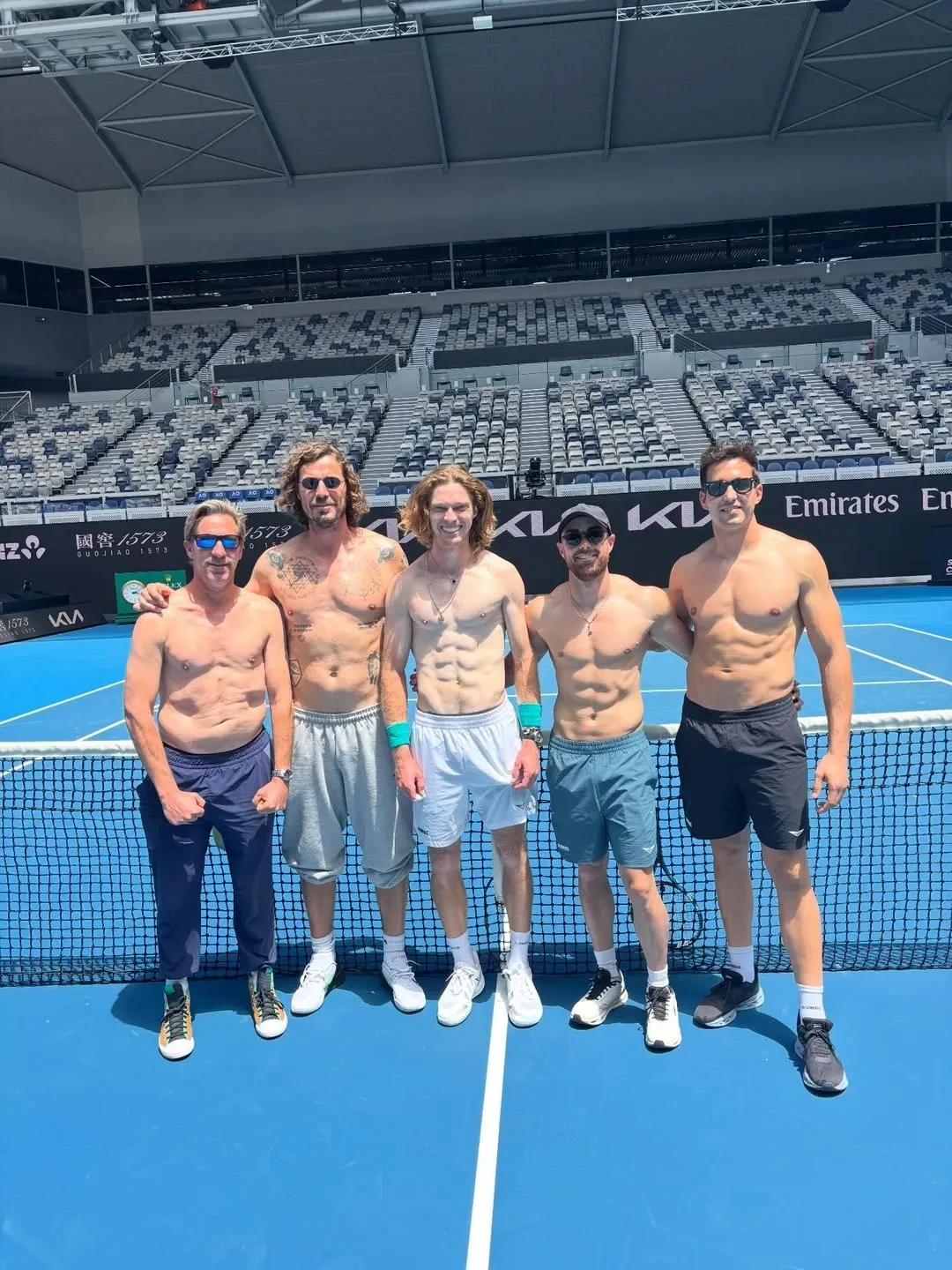 28-летняя звезда мирового тенниса Андрей Рублёв снялся на корте с голым торсом вместе с 45-летней экс-первой ракеткой мира Маратом Сафиным. Снимки Сафин опубликовал в своём инстаграме*.