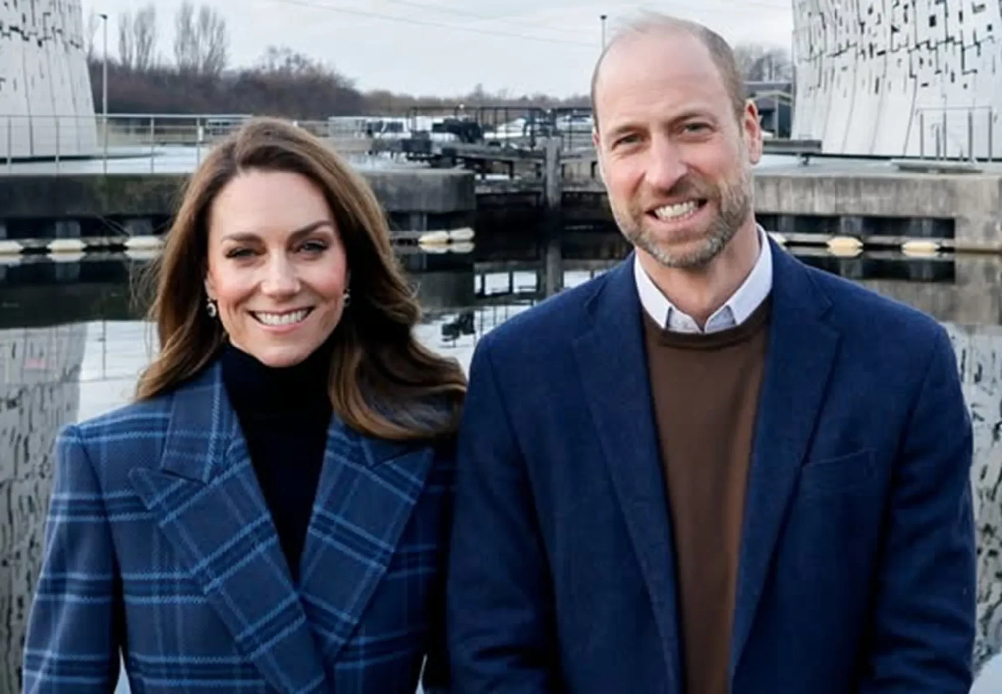 На фото принц и принцесса Уэльские позируют на фоне знаменитой скульптуры The Kelpies в виде лошадиных голов авторства шотландского скульптора Энди Скотта, которая находится в городе Фолкерк, у входа в канал Форт-Клайд.