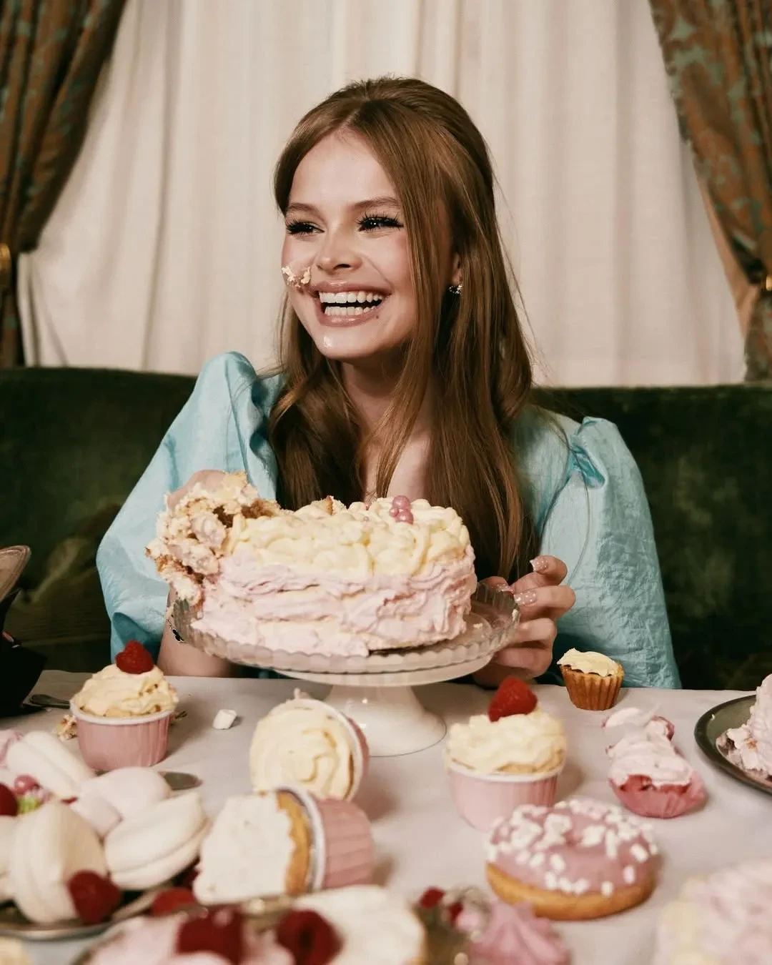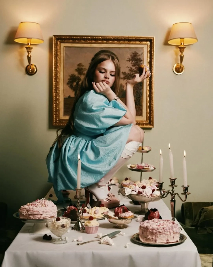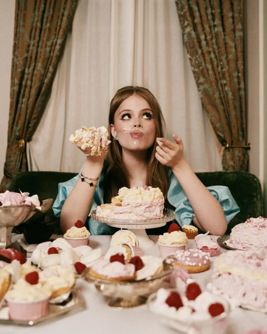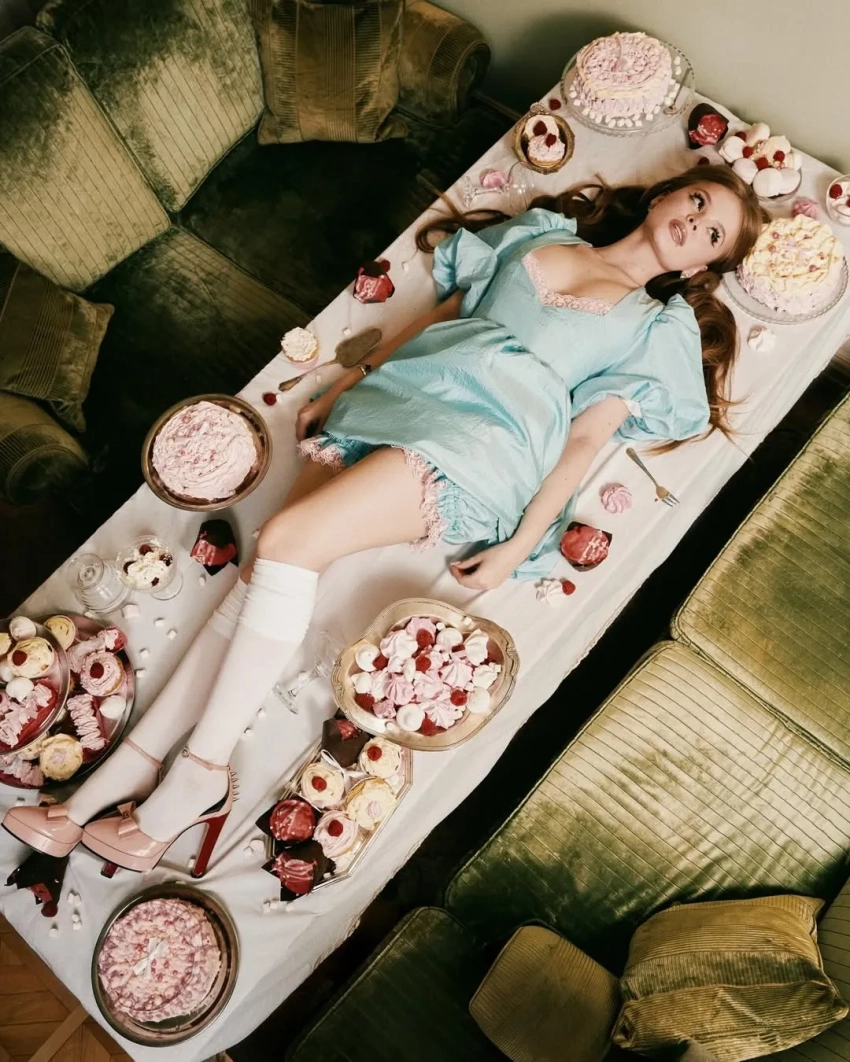 Маирко (настоящая фамилия звезды тинейджеров) в мини-платье с декольте попозировала, лёжа на столе в окружении тортов и пирожных. "Сладкие 16", — подписала она кадры.
